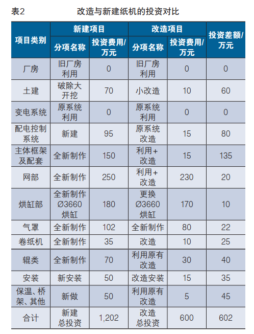 改造紙機(jī)首先考慮是否具備改造條件, 從投入、 產(chǎn)出和安全方面進(jìn)行分析。 投資回收期在1~1.5年, 都可以進(jìn)行改造。
